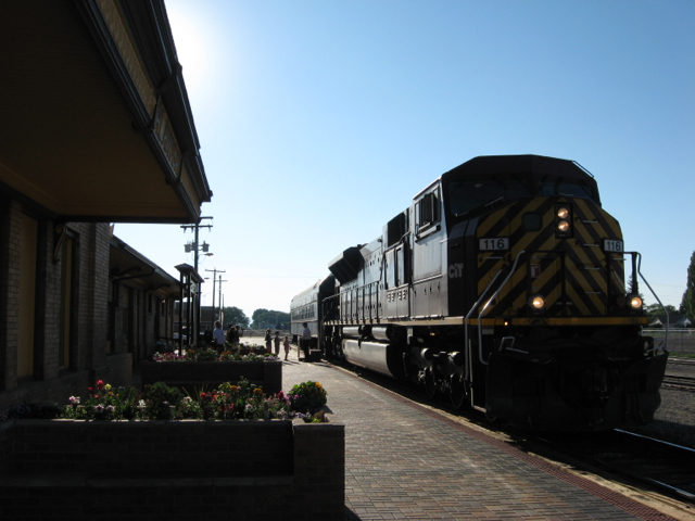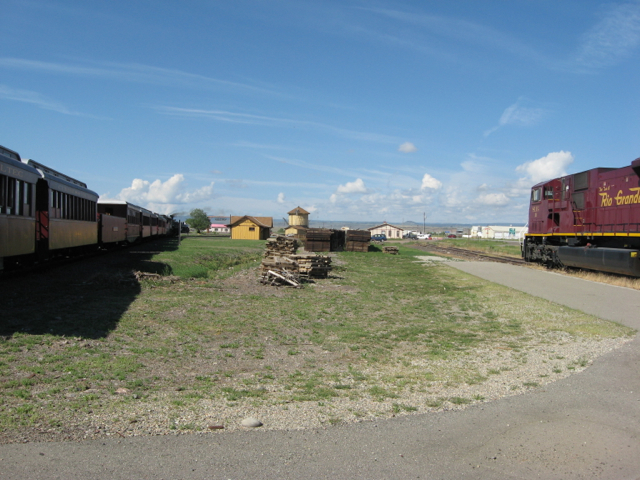 The Rio Grande Scenic shuttle train prepares to depart Alamosa