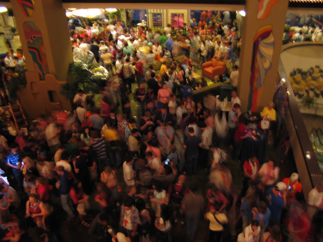 shopping mall near the station and the adjacent Hyatt Hotel lobby.