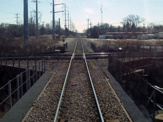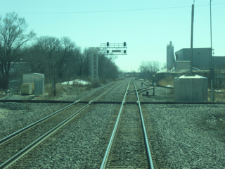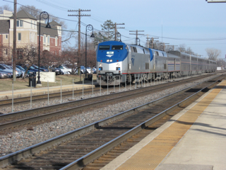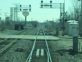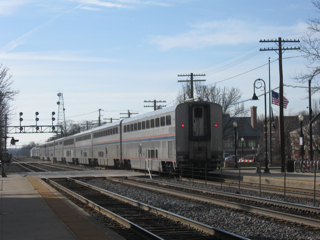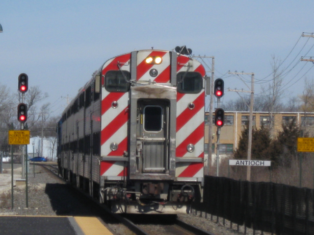 ![]() Northbound Metra train # 103 pulls away from the Antioch station to clear the block between runs. |
