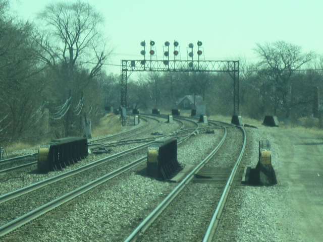 ![]() Position light signals handle traffic control on the approach to Union Station. |