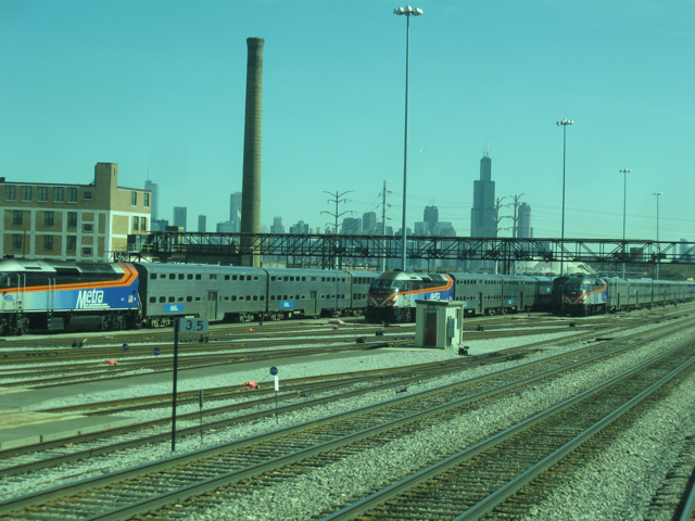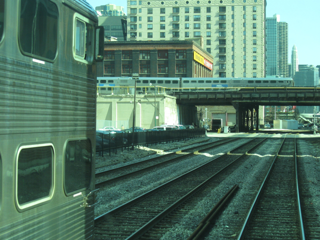 ![]() A Metra train passes above on the line to Ogilvie Transportation Center (former Northwestern Station). |