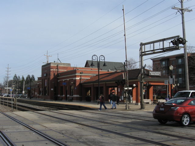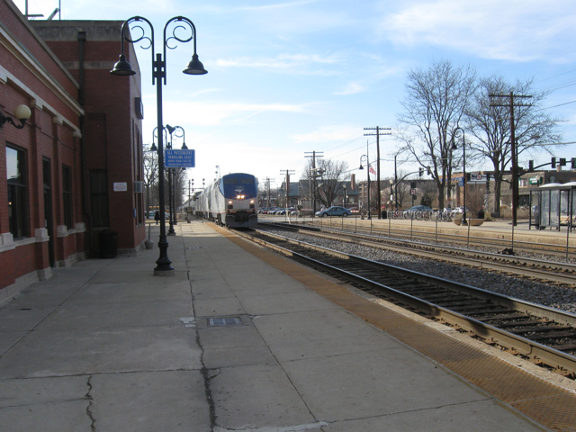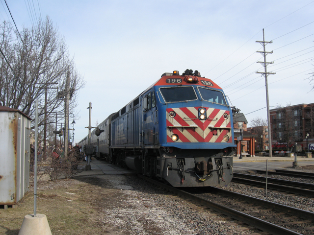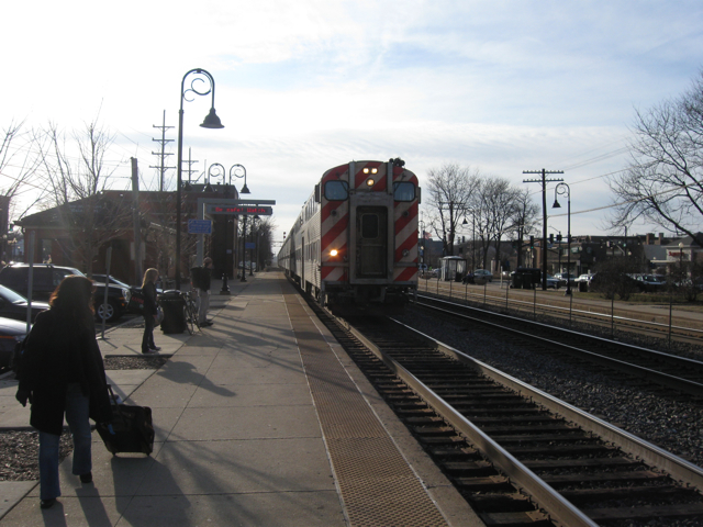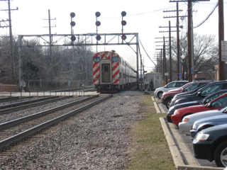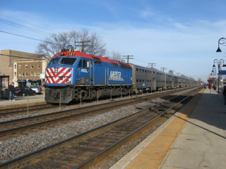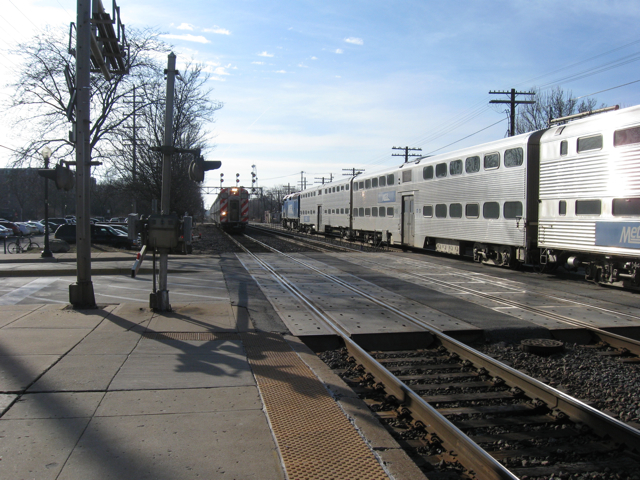 ![]() Eastbound Metra # 1272 arrives in Downers Grove. We will board this train to Chicago Union Station. |
