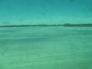 ![]() The frozen water of an adjacent lake as seen from the train. |