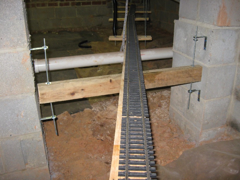 Next I will work on adjusting the supports to provide an even grade to the road bed from the foundation vents to the #6 switch. I will make the final cuts to the plywood road bend. Then I will finally start laying track. I have purchased a Train-li rail bender and have 4.5’ length of Aristocraft stainless steel track.