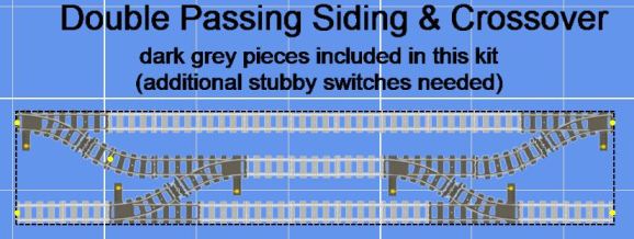 The switches have been modified to remove the "S" curve on the standard Lego switches. The curve path is now equal to 1 1/2 curve track pieces. Included are 1/2 curve pieces to make multiple configurations.
