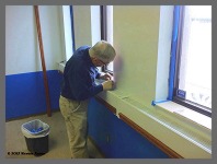 Barb Owens washed all the windows and cleaned the restrooms. Bob Snyder did a room full of trim work. Steve Kocsis removed all the tinting from our new double doors in the Bar Room. | ![]() |