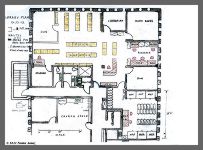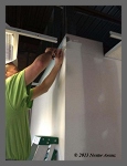 | * Food Service Area - We repowered the electrical outlets in the wall, plus added a GFI outlet at the sink and lowered the outlet at the coffee table. We also rewired the overhead lights to operate from a switch at the door. * Meeting Room - We repowered the electrical outlets in the walls and put the overhead exhaust fan on a separate switch. We also added two LED Exit signs. * Museum Area - We wired all overhead lights to a switch at the door. We also put the display case lights on its own switch. A security camera was placed overhead. |
