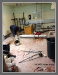 | WORK ACCOMPLISHED - In the past two months we have completed the following projects as part of our Wendt Grant. Our volunteers have worked very hard in concert with the many contractors who are making improvements at the Don Owens Center. - Removed a large air conditioner from the former second floor computer room. - Completed construction of our kitchen with new walls and electrical installations. - Constructed a wall to create a map room next to the library. - Removed the women's room shower and installed a new toilet stall. - Removed eight shower stands in the former men's shower room. - Repaired roof leaks and tarped over the air conditioner units. - Cut in a new door to the Archive Building in order to have direct entry from the main building. - Replaced carpeting in the elevator. - Constructed a second janitor's closet on the first floor. |