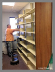 - ARCHIVE BUILDING - 5/7/16 - Steve and Adam re-boxed dozens of miscellaneous boxes of archives into new standard bankers boxes and placed them on newly erected archive shelving.
