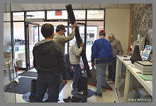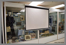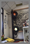 - DISPLAYS -5/7/16 - Joe K. hung a new projector screen off the white display cases in the meeting room. Joe K., Steve K., Nestor A., Alex T., Bob S. and Jim Slominski moved a NYC signal bridge mast from the Orchard Park Depot to HDC and erected it in the Lobby. The signal lights up red, yellow & green.