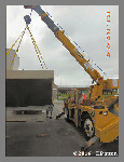 - BUILDING #75 - 5/28/16 - Mike, Ed, Marty, Ron, Adam, Steve and Tony moved our railroad cross-buck signal from outside the Hospital Building and four wooden tables donated by Mike P. to inside Building #75. Ed, Mike, Marty and Steve also worked on the large roll up door guide rail and got it corrected.