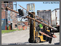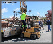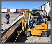 4/20/19 - Mike P. and his crew, Nestor A. and Marty V. cleaned out more debris from the storage trailers and restacked the remaining items. They then opened the D&H boxcar and removed three large electric projector screens to HDC back hallway. Marty L. and Adam P. worked on the Grove crane and made a list of needed fluids and parts. Don Williams picked up all the metal scrap from the trailers and took it to the scrap yard. Mike P. took a truckload of garbage to the landfill.