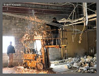 4/4/19 - Nestor A. policed the grounds for trash around the HDC building. Mike P. and his crew continued scrapping out the ice maker and continued to scrap out electric motors from the two 20-foot containers. RiverWorks contractors removed unused piping and brackets from roof in Building #75.
