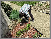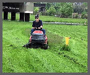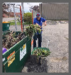 4/25/19 - Erica did more gardening out front. Tony picked up trash around the building. Jeff worked on lawn mowers. Nestor and Jeff restacked Portage Bridge parts in Guardhouse and cleared space.