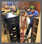 4/23/19 - Caryl Y., Mike S., Dave M., Bob S., Nestor A. and Jerry S. unloaded Caryl's truck of storage items from the Orchard Park Depot. A load of trash was taken to the landfill by Mike P. Artifacts were placed in the Hospital Building. Dresser records were placed in the Archive building. Don Williams took metal scrap from Area A to scrapper.