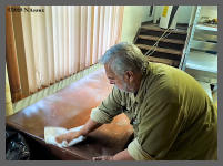 4/25/19 - Our contractor cleaned the restrooms and mopped the floors. Barb mopped the corridors and started to set up a "Go Fund Me" account for Portage Bridge display. Tony collected the trash and did the dishes. Marty started to repair and hang our large projection screen in the Meeting Room.