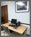 4/20/19 - Nestor brought in two desks. Mike P., Nestor A., Marty L., Jeff S. and Tony M. moved a large conference table top into the Conference Room from the second floor. Jeff placed 12 conference chairs around it. Jeff moved all the paint buckets and tools left in the room to the Tool Room.
