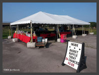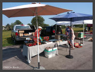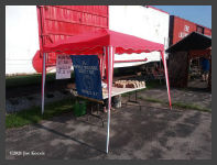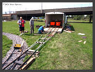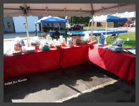 | Saturday morning broke bright and sunny on August 28th for our first day of our "Railway Heritage Festival" at the Heritage Discovery Center on Lee Street. Dealers started setting up on Friday with their tents and displays. In addition to our Basket Raffle, we had our "RailMaster" park train running on the lawn area for the kids. |