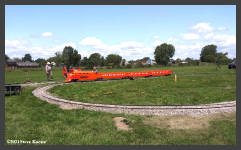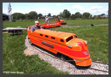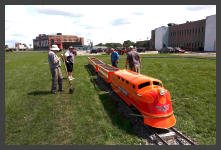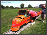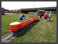 | "Engineer," WNYRHS Vice President, Marty Visciano takes kids for a ride on our "RailMaster" park train. |