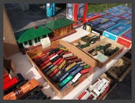 | Some dealers brought model railroad equipment to sell as well as vintage toys. The Boffalo Model Boat Club set up a "pond" to demonstrate their remote control watercraft. We also had a nice display of railroad brakeman lanterns and the Buffalo Geological Society had a great display of rocks and minerals. |