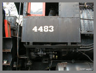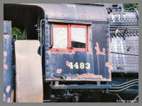 | in the fact that they show #4483 on a siding only used when the "Erie County Fair Train" would cometo town in August and later in the year, moved back to its current location. The PRR Business Car the "OHIO" was still in Hamburg and it also shows some early paint preparation on the boiler. After the locomotive's arrival in 1983, the decaying boiler jacket was removed over the summer of 1984. |