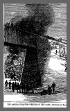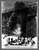 | "The most shocking of the disaster was the fate of those in the rear car. When the can went down the embankment, the pot-bellied stoves at both ends were overturned, the red hot embers spilling out setting fire to the coach (of wooden construction), and twenty three human beings were literally burned alive, while fifteen others were crushed to death. Their cries for help were truly heart rendering. The car was totally consumed, but (with only) two of all the number inside escaping. None of those who perished could be recognized. The remains were gathered up and taken to the freight house and placed upon boards to await the arrival of coffins, which had been ordered from Buffalo by authorities of the railroad. |