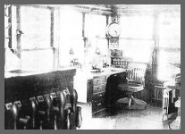 | Open twenty-four hours a day, there would be one tower operator on duty for each eight hour shift. There would be the familiar tower operator sitting at his desk in the window illuminated by a lamp. At his disposal was the telegraph, teletype, telephone, and speaker box with the dispatcher at Erie, PA., which was the CTC control point for the entire "Erie Division." Mounted on the roof and coming down past the overhang were wires connected to a signal light which displayed yellow for train orders, or displayed blue indicating car pickup or setout at Seneca Yard. |