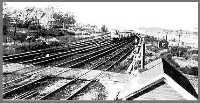 | Just northwest of "BV" Tower you can today see two telephone poles side by side with a crossbeam. It was here where a high-car detector device was placed after an incident in which an extra high vehicle on the top level of an autorack car was riding in the days before they were fully enclosed and it didn't quite make it under the Tifft Street highway overpass. Oops! By 1930, when the Bay View Tower that we remember was seven years old, there were within a twenty-four hour period 83 scheduled trains. Not counting extra sections of passenger trains, and the adjacent Nickel Plate and Pennsylvania Railroad traffic this meant over 100 trains crossing Bay View Road. Quite a traffic increase from 54 trains in 1918 and 67 trains in 1924. |