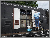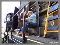 On Saturday July 30th we brought in reinforcements. In addition to the 80 volts from the battery trailer, Pat brought down BSOR #100 ALCO-S2 built in 1945, to supply extra starting power. | ![]() |