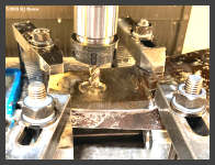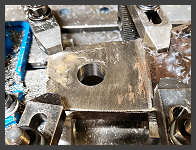 We couldn't just drill the 1.25" clevis pin hole with a twist drill so we needed a vertical mill to do the job. Crew member Rick Burns is a retired "Master Machinist" and still has friends in the industry. A huge "Thank you" goes out to Doug Webster of "Peak Motion, Inc." for helping us out. He had his machinist Owen Landon mill the hole on a "Haas 4 axis Vertical Mill" in less than an hour. | ![]() |
