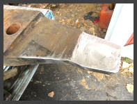 | After a quick "pre-lube" with our on board oil pump, I stood ready at the governor as Rick hit the starter button. We quickly got a real life experience with a "weak link" in a chain reaction. "ZZZZZZZit" POW! One of our jumper cables blew up right behind me! After the smoke cleared we saw the separated cable with a clean cut at the terminal end. Upon closer examination, we saw green corrosion inside the terminal end crimp which put our fears to rest that we had cooked a battery even after triple checking all our connections. We soon had another good cable bolted in place and tried again. |