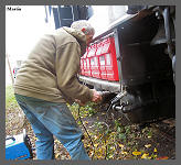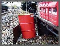 | On the 22nd, Bob Martin and Jim Long, started the engine to let the oil warm up to drain the crankcase. After a half an hour, they shut the engine down for the last time this year. Two empty 55 gallon drums were spotted under the drain valve. In less than 20 minutes, the drum was three quaters full so they switched to the empty one. While it was filling, they opened the water drain valve and emptied the cooling system. We have been flirting with low thirty degree temperatures so no sense in taking chances. |
