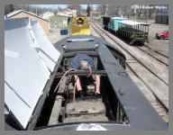 | Reverse first for a few feet and then Pat tried forward, nothing. Reverse again for another few feet but again no forward movement. One more time in reverse and again forward and we were moving! With each forward/reverse move, the oxidation on the controller, the relays and the commutators on the traction motors was removed and the throttle response was immediate. |