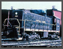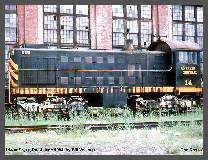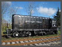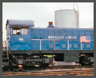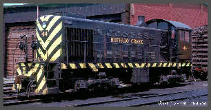 | The Buffalo Creek was an all steam railroad up until 1939 when its first two diesels arrived. The railroad bought two new Electro-Motive Corporation SW 600hp Winton 201-A engines built in 1938 and they became BCK #40 and #41. In the spring of 1940, the Buffalo Creek bought two more 600hp diesels. EMC SW1 #42 with an EMD 567 prime mover, arrived first followed by their first ALCO, HH660 #43 powered by a McIntosh & Seymour 538 engine.(4) The new diesel locomotives served the grain mills and many warehouses through tight curves and thousands of switches located along the Buffalo River. After the war, the BCRR evaluated the performance of the ALCO and its EMD counterparts, taking into consideration such items as percent of time in service, cost of maintenance, repairs and track handling. #43's reliability and the ease of quickly getting replacement parts swayed the railroad to place an order with ALCO in 1947 for four (#44, #45, #46 & #47) of their new 1000 horsepower ALCO 539 powered S-2 locomotives.(4) These were followed by four more used S2's and a used S4 up until 1956. The BCK remained an all ALCO railroad until its take-over by Conrail in 1976. |