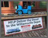 Our efforts are continuing to bring an authentic Lehigh Valley diesel locomotive to the Williamsville Depot. Thanks to you, our financial donations are growing each month. Currently, there are dedicated funds that the Depot has received of over $20,000.00 from private contributions. But more is needed to transport the locomotive to our historic site. Take a minute to go to our "Go Fund Me" page titled "Deliver the Diesel" and make a donation no matter how small it might be, every penny counts, Thank You! | ![]() |