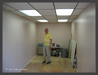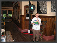 | By the time our July summer meeting was held, the boxcar interior was almost complete. Eight, 4-foot fluorescent fixtures, flooded the interior of the car with light. Any building contractor would be proud to call this home. Bob showed off his electrical work to the Society before the meeting began. This meeting also featured the induction of Chuncey M. Depew to our "Roll of Honor," past NYC Railroad President. Greg J. did the dedication and also presented a "Certificate of Appreciation" to the historian of the Village of Depew, New York. | ![]() |