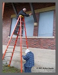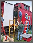 4/24 Bob Reynders painted the semaphore throws, 5/4 major freight house cleanup (Depot Crew) & patch door of boxcar II (Gary Ludwig & Roger Smith). | ![]() |