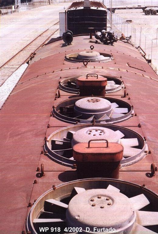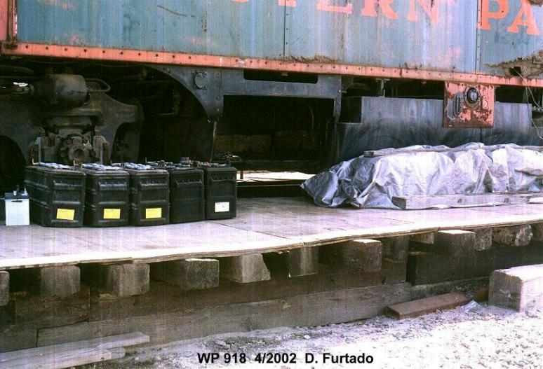 It was decided early on that we would start from the top of the engine and work our way down. The roof has a considerable amount of surface rust, and the main roof hatch will have to come off to replace the mufflers. We will be installing spark arresting type mufflers in order to operate 918 in Niles Canyon. While Don and Phil worked on the battery boxes, I loosened up the bolts (and broke a few too) to the front two hatches (main and dynamic brake). |