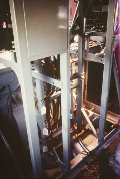 The view of the bottom half of the electrical cabinet as seenf rom inside the cab. |