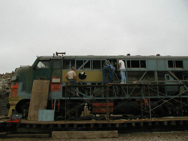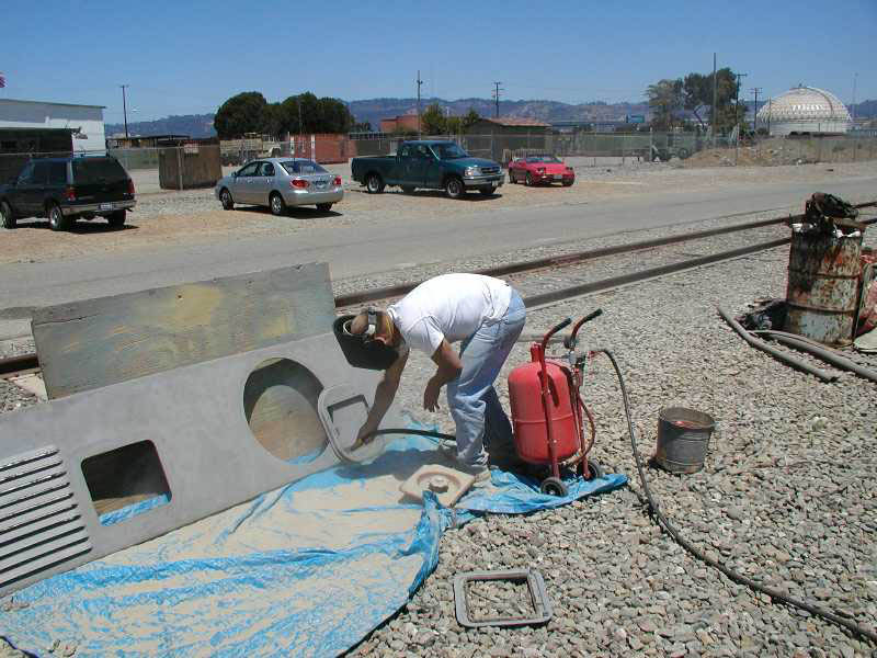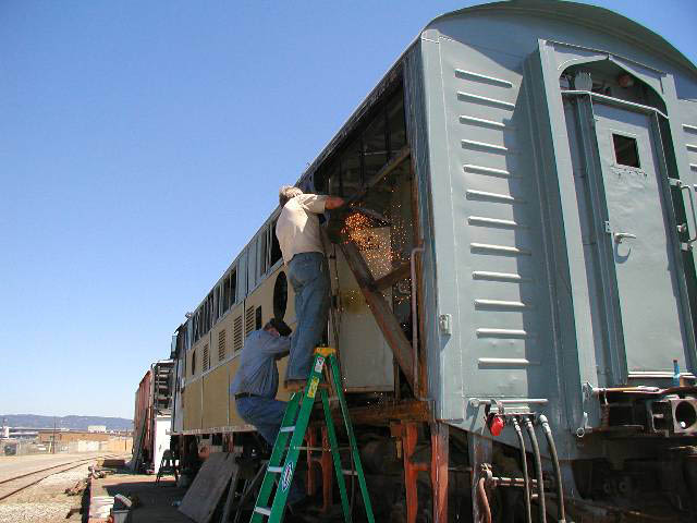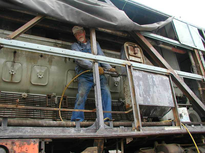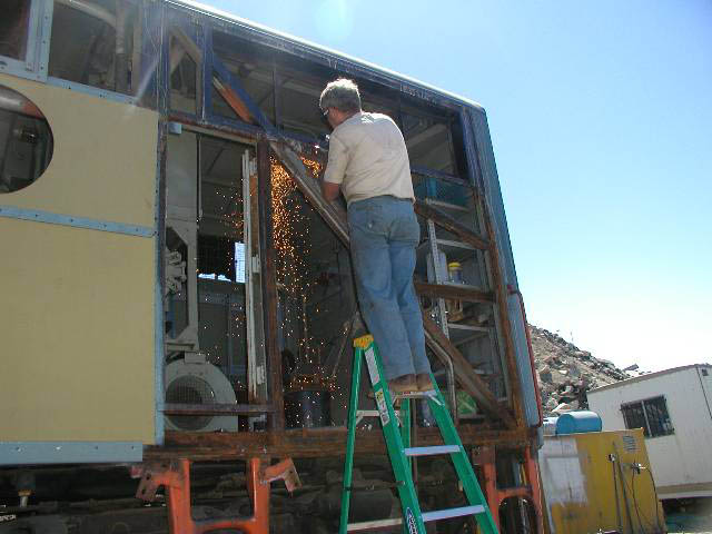 week of August. Here Don and Jon work on removing the old rusted channel-iron.