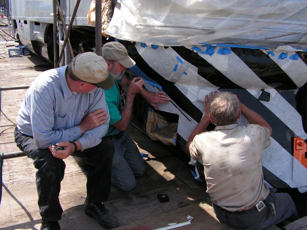 Veteran letter and stripe masker Phil Orth (in the cap)